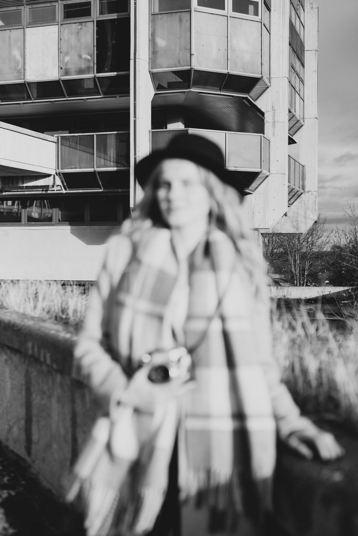 Zimní focení uprostřed brutalistní architektury. Beton, chlad a člověk – esteticky přitažlivá kombinace. Stálo to za to, i když jsme pěkně vymrzli. Ještě že jsme měli termosku s horkým čajem v batohu.